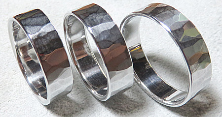 2017.01/17 ご注文: 石川県白山市 H.M 様(1/23着) 幅=4mm、サイズ=18号、槌目=標準 x 2 本 幅=6mm、サイズ=18号、槌目=さざ波 x 1 本 |